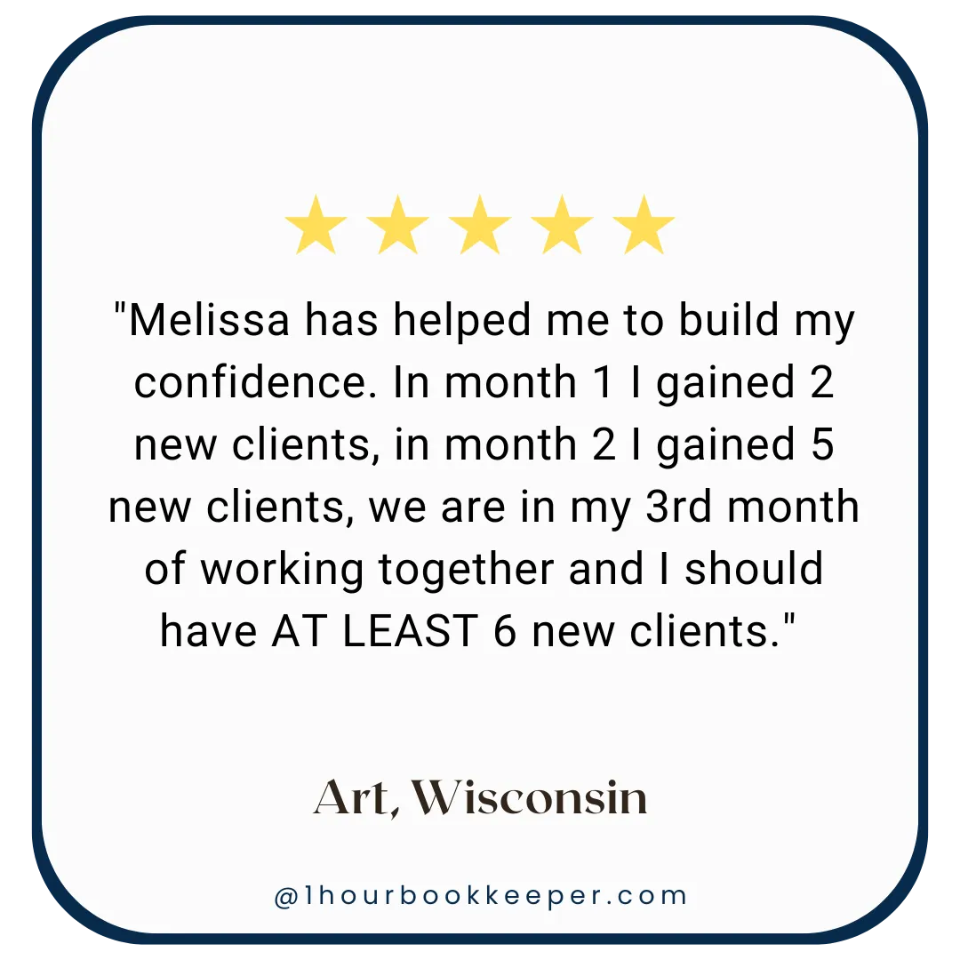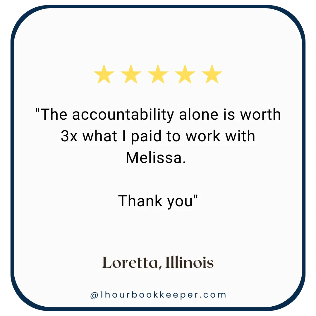 *Earnings and income representations made by Melissa Broughton, 1hourbookkeeper.com, and their advertisers/sponsors are aspirational statements only of your earnings potential. These results are not typical and results will vary. The results on this page are OUR results and from years of testing. We can in NO way guarantee you will get similar results